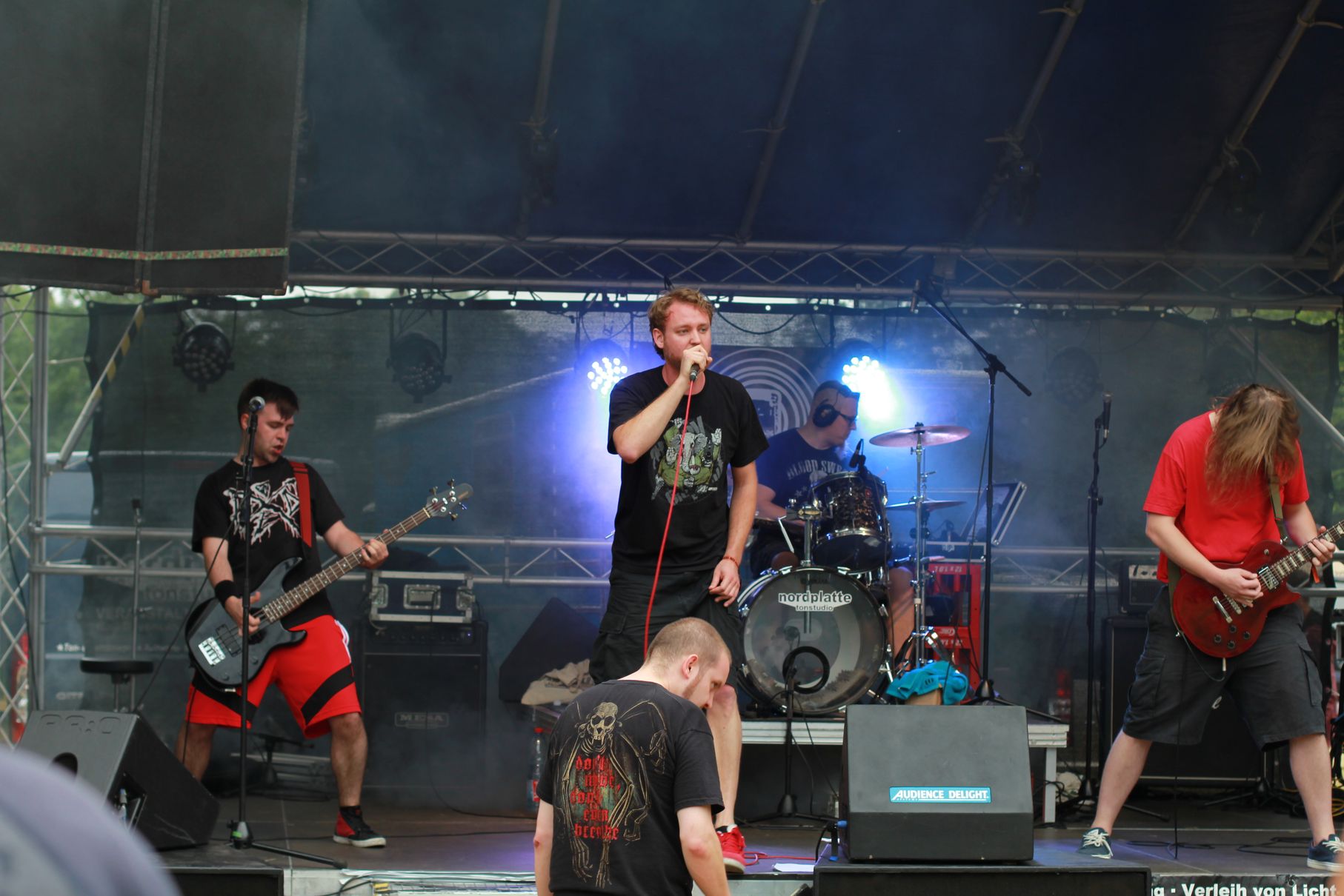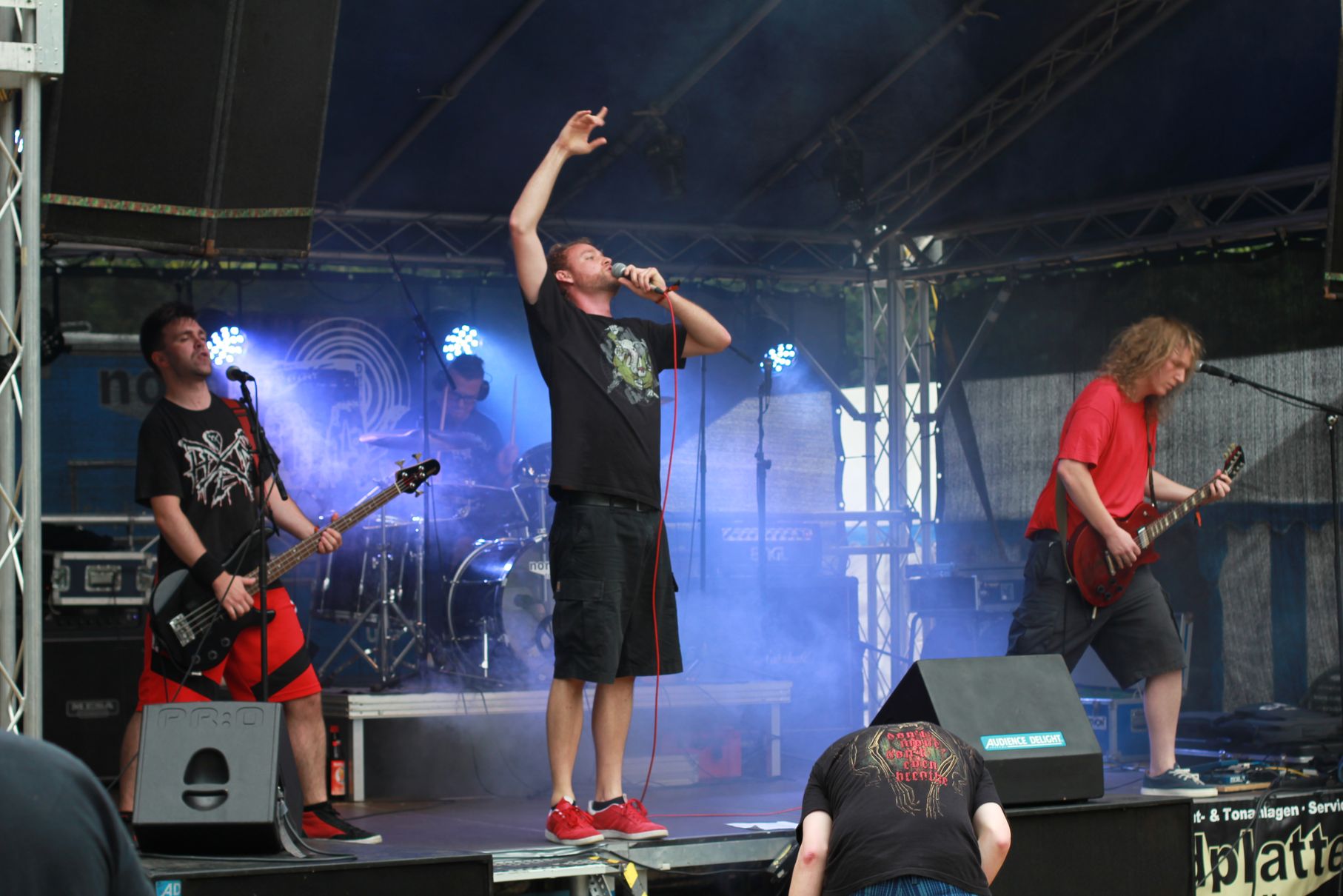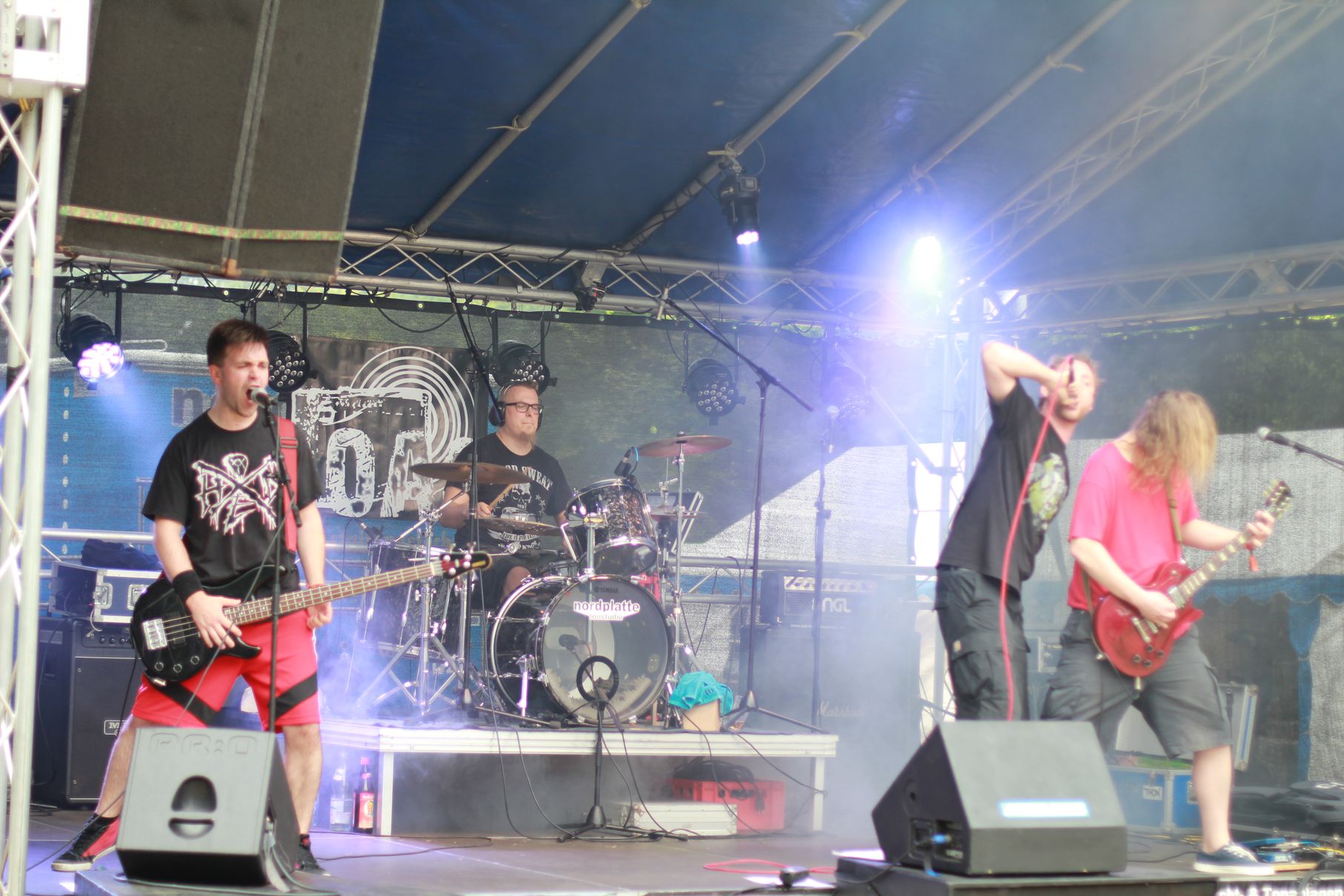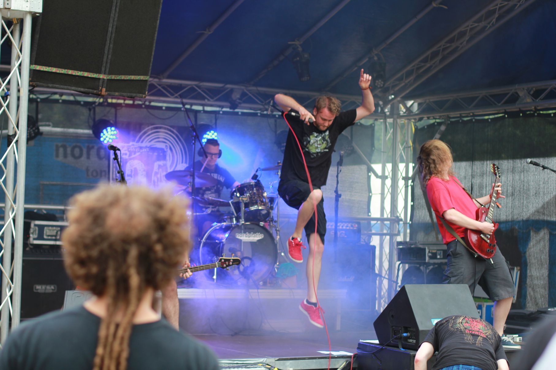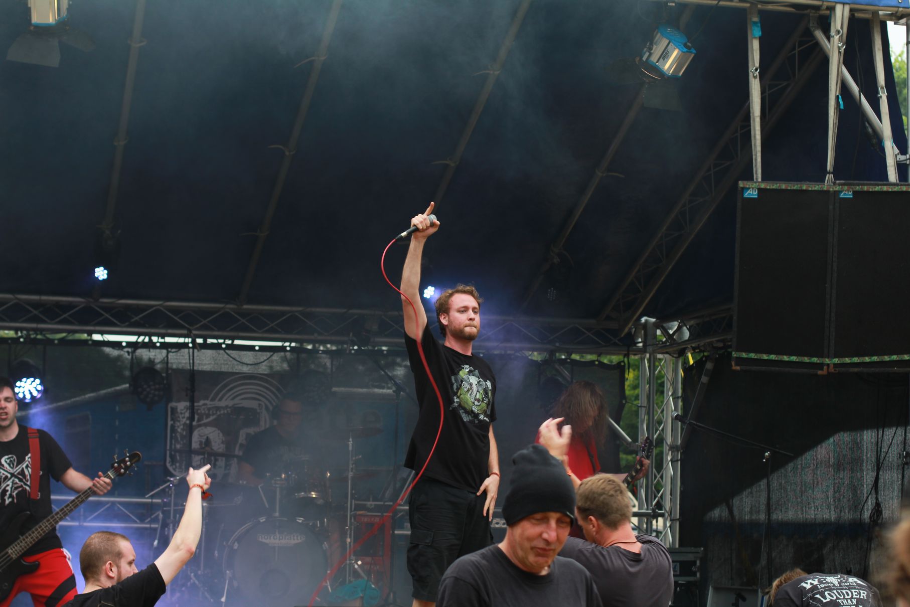 Los ging es um kurz nach Vier mit Anemoi. Es folgten Double Me, Down By Contact, die Uelzener Band The Beautiful Masquerade und Taina. Dann gab es eine kurze Abkühlung von oben, aber Cripper aus Hannover machten als Headliner dermaßen Druck auf der Bühne, dass auch der letzte kleine Regenschauer das Weite suchte. Die Menge vor der Bühne hatte sichtlich ihren Spaß. Seht selbst: