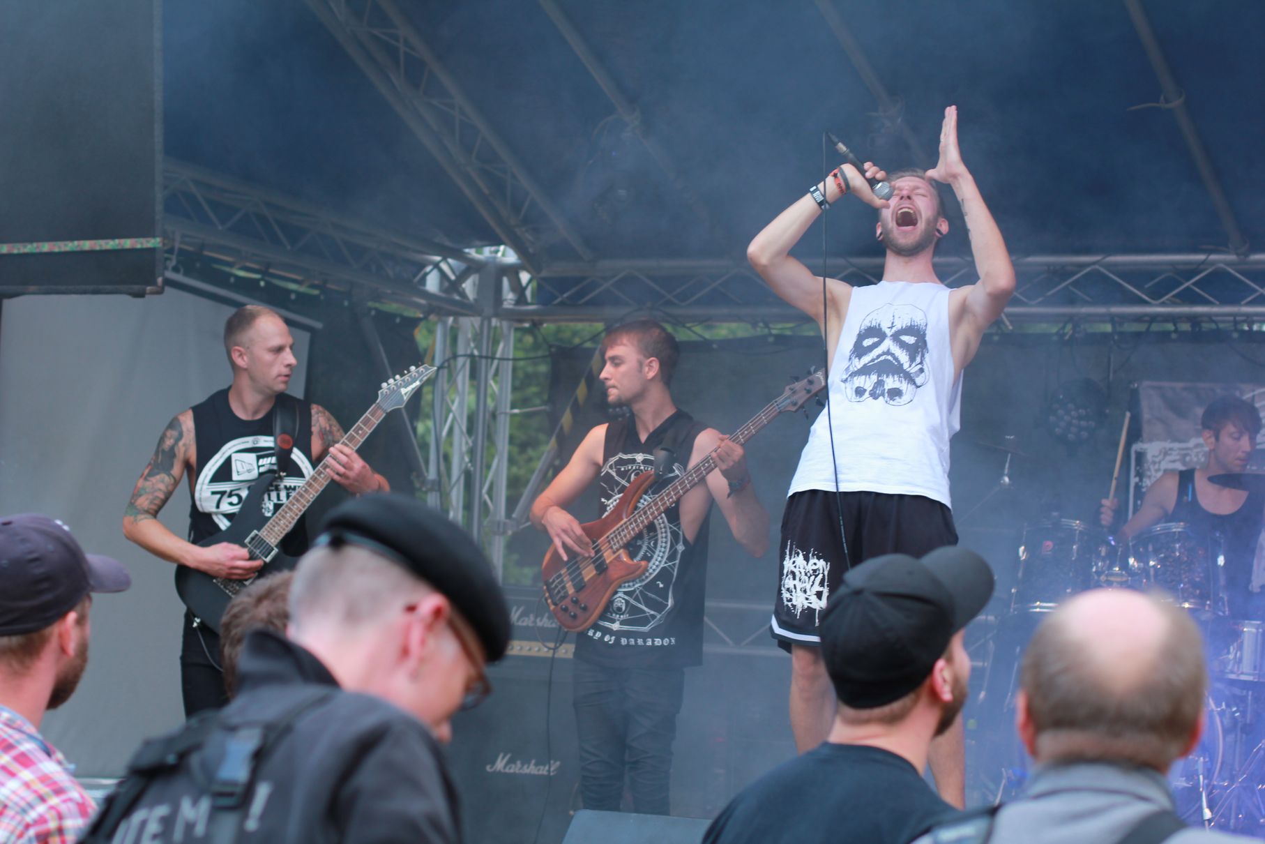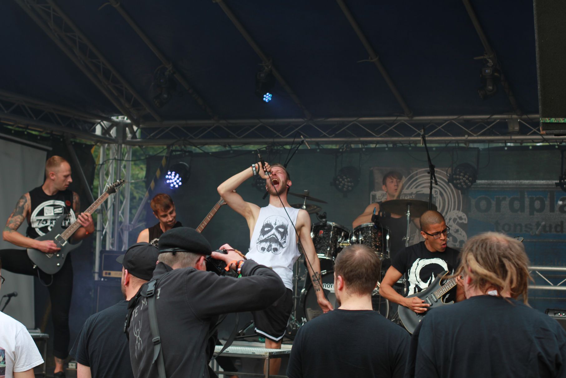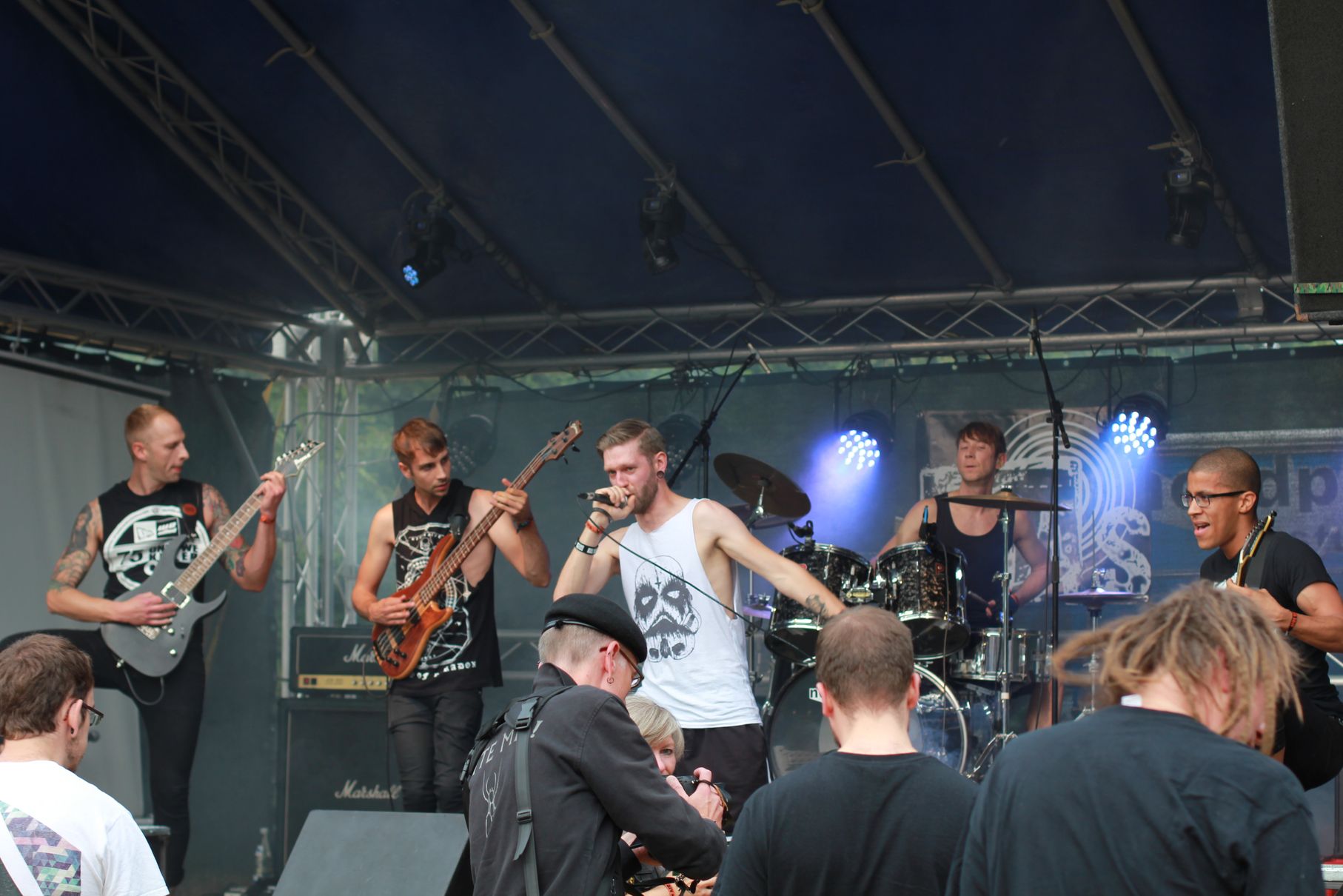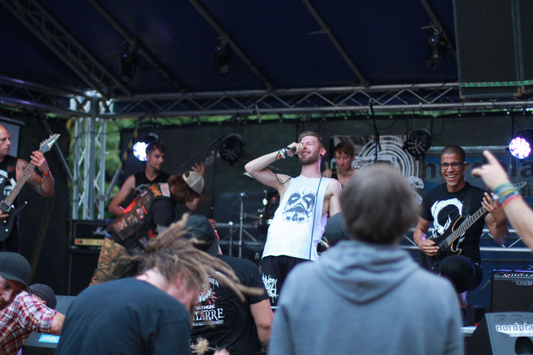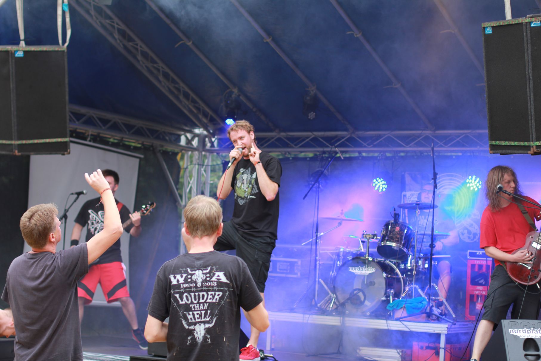 Los ging es um kurz nach Vier mit Anemoi. Es folgten Double Me, Down By Contact, die Uelzener Band The Beautiful Masquerade und Taina. Dann gab es eine kurze Abkühlung von oben, aber Cripper aus Hannover machten als Headliner dermaßen Druck auf der Bühne, dass auch der letzte kleine Regenschauer das Weite suchte. Die Menge vor der Bühne hatte sichtlich ihren Spaß. Seht selbst: